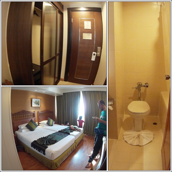 Sebelum tu, kami masuk dulu untuk selesaikan urusan hotel. Harga bagi semalam hotel ni adalah RM180 dengan membuat tempahan di Agoda. Bawa yang printed je tunjuk pada receptionist. Wang deposit sebanyak 1000 baht dan dapat ditebus balik bila dah check out. Bellboy menurut kami dari kaunter, lif sehingga la ke muka pintu bilik. Konpius sebab kami tak pernah diiringi pekerja hotel selama ni ke bilik dan masih tercegak depan pintu sambil tersenyum. Faham la kami bahawa nak tip rupanya… Kami hulurkan 20 baht dan berlalu la bellboy tu. Nak tergelak pun ada. Ni la pertama kali kami bagi tip. Cukup ke tak 20 baht tu wallahualam. Bergembiralah wahai bellboy yang manis.