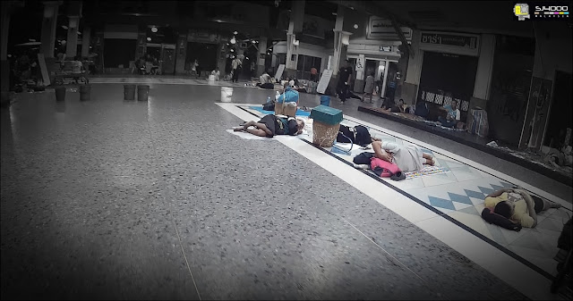 Keadaan sama gelandangan kami pernah lihat di kaki lima deretan kedai di Kuala Lumpur. Kira yang ni lebih bernasib baik. Siap ada tong tadah air hujan lagi.