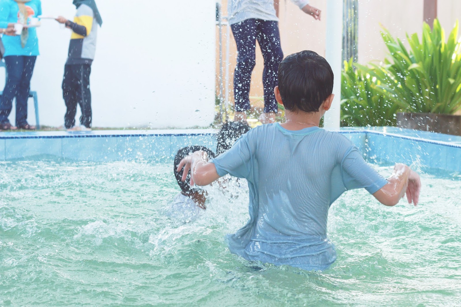 Main air sehingga tak hirau orang kiri kanan. Beriya betul Nufail ni terjun kolam.