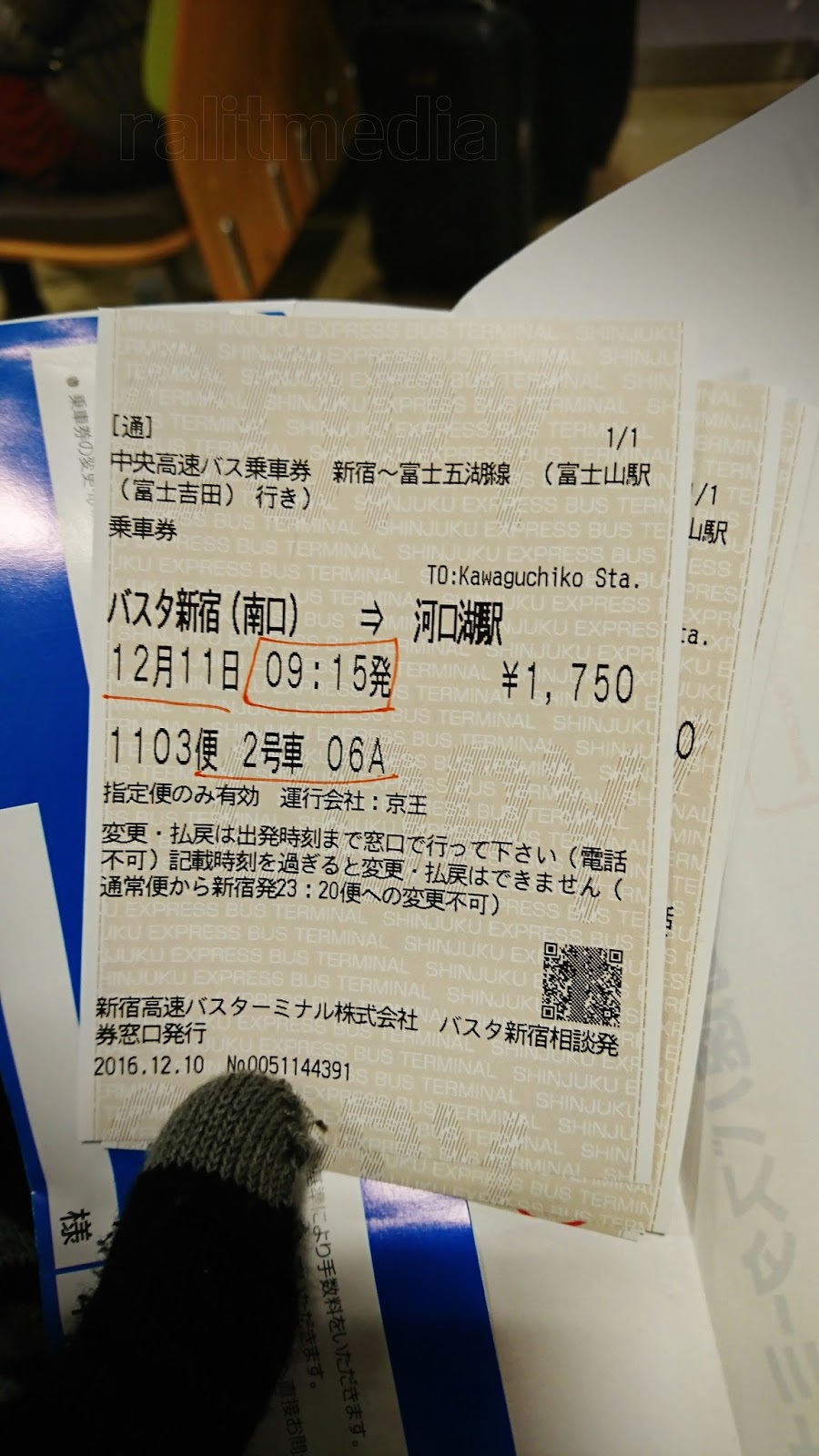 Ni tiket bas. Naik bas nak ke Kawaguchiko Station dan memakan masa selama 2 jam. Kalau tidur, tak dapatlah lihat pemandangan sepanjang perjalanan.