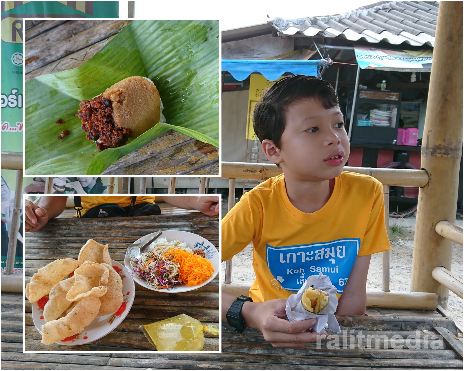 - Beli je di mana-mana gerai dan makanan yang dibungkus itu boleh dibawa masuk ke dalam kedai. Seolah kampung tu saling bersaudara. Tak ada istilah makanan luar tidak dboleh dibawa masuk. Haha. Mereka memang baik. Boleh bercakap Melayu dalam loghat Kelantan.